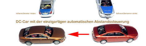 Jedes Fahrzeug das mit dem DC-Car Decoder ausgerüstet ist beinhaltet die einzigartige, automatische Abstandssteuerung.