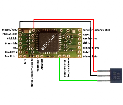 Beim DC-Car wird er für die Bus- und Feuerwehrautomatik verwendet. Die jeweilige Funktion wird über CV's eingestellt.