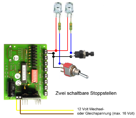 Mit einem Taster kann eine Infrarot-Stoppstelle beim Drücken kurzfristig eingeschaltet werden.