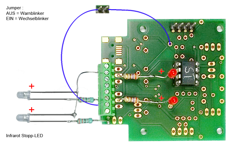 Über die Infrarot-LED werden die Fahrzeuge auf der Straße angehalten. Mit dem WS-Tiny kann auch noch das Warnlicht angezeigt werden.